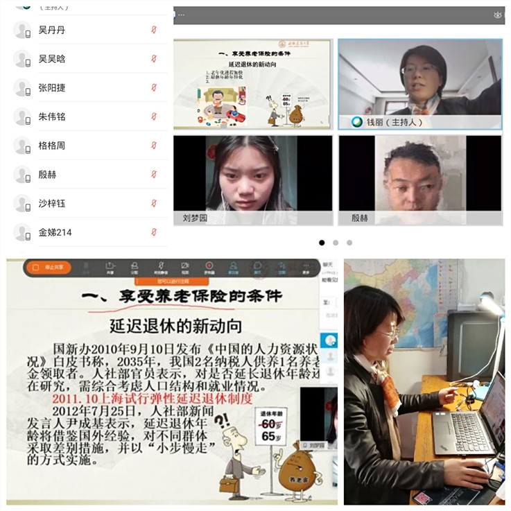 2月17日,是线上教学第一天。公管学院在26个教学班中共开设线上课程33门。授课教师分别使用腾讯会议、腾讯课堂、思科Webex meet会议、Zoom会议、雨课堂、超星、智慧树、e会学慕课等各种线上教学平台进行线上签到、教学、互动、测验、答疑、辅导等教学活动,同时建立课程QQ群或微信群,积极做好各种应急预案,保证在线学习与线下课堂教学质量实质等效。学院教学办和学工办紧密配合,认真梳理学生选课情况,确保到课率,督促广大学生投入线上学习。学生通过学习平台可随时查阅课程信息、教学大纲、教学日历等内容,既能灵活掌握学习时间,又能够获得丰富的学习资源。在全院师生的共同努力下,新学期第一天线上教学秩序稳定有序,真正实现了“教师用心教,学生用心学”。
