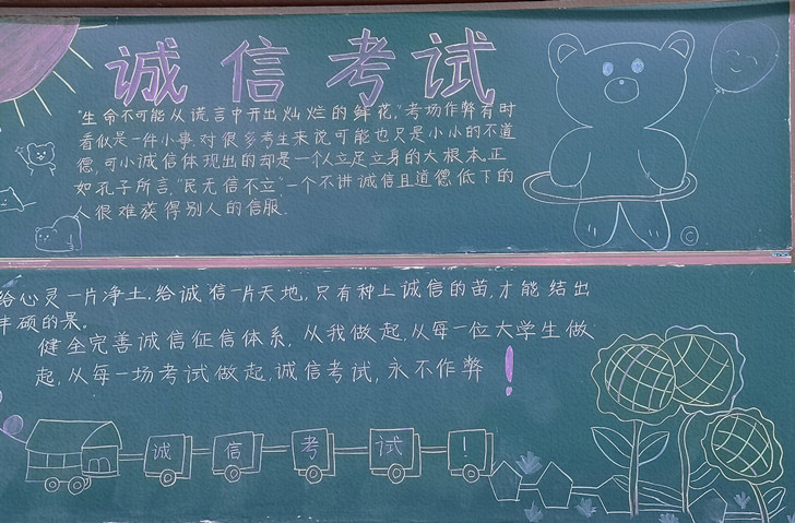 本网讯  1213日,公管学院举办以“诚信考试”为主题的黑板报评比活动,培养大学生诚信理念,在期末考试周严以律己、积极备考,做好自我管理和自我教育,力争成为品学兼优的大学生。