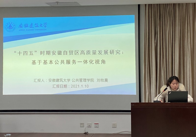 此次会议共分两个环节。一是工作总结和论文表彰,并向获得优秀论文的作者颁发证书;二是进行学术交流与研讨。在大会主题发言环节,我院研究生刘牧晨同学做了题为《“十四五”时期安徽自贸区高质量发展研究:基于基本公共服务一体化视角》报告。从安徽自贸区基本公共服务均等化发展现状、安徽自贸区基本公共服务均等化存在的问题以及自贸区服务均等化提升路径等3大方面分享了自己最新的研究成果。