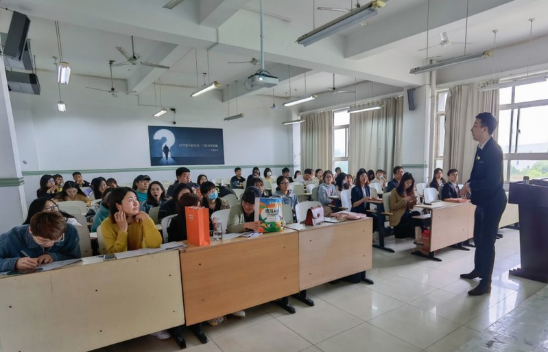 专场招聘会在主楼1402教室举办,科大智能、猿辅导教育、斑马AI教育、平安金融、simple猎头与艺朝艺夕教育集团通过宣传视频、PPT详细介绍了公司基本情况,从成长历程、岗位设置、实习需求、福利待遇、面试流程等方面进行详细解读,诚邀公管学子投递简历。