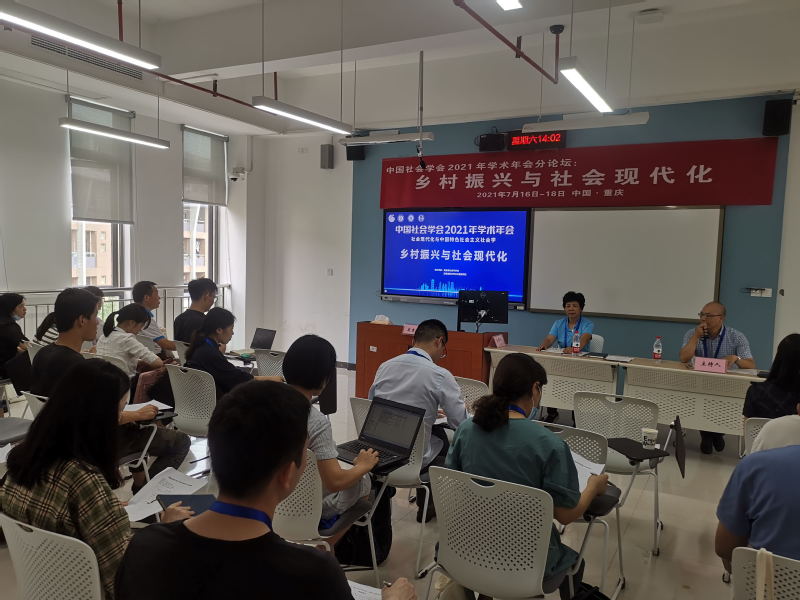 本网讯 7月17日,由我校公共管理学院、安徽省社会学会联合承办的中国社会学会2021年学术年会“乡村振兴与社会现代化”分论坛在重庆工商大学涵智楼成功举办。分论坛由副院长黄佳豪教授主持,院长丁仁船教授、安徽省委党校李琼英教授担任点评嘉宾,安徽省社会学会会长金乃俊致开幕词。受疫情影响,分论坛人数规模限制在30人。