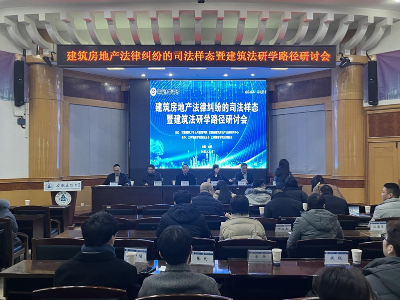 本网讯 12月23日,安徽建筑大学2023年易海法学论坛在北区建树楼三楼报告厅顺利召开。本次会议由公共管理学院和安徽省建筑房地产法律研究中心主办,公管学院校友分会、法律协会承办,论坛聚焦我校法学专业特色,以“建筑房地产法律纠纷的司法样态暨建筑法研学路径研讨”为主题,邀请了安徽省高级人民法院高级法官王依胜作主旨报告,校友工作处、公管学院、建筑房地产法律研究中心相关领导,来自公检法系统、律所、省直机关等校友,校内法学专业师生共80多人参加了本次会议。