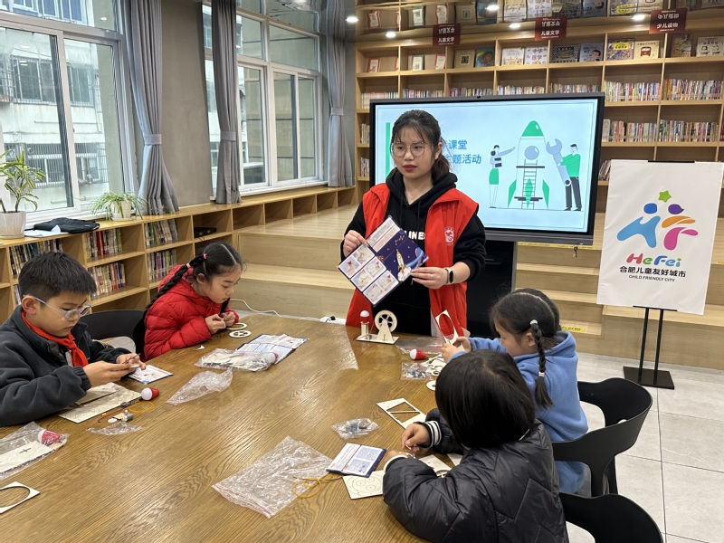 道德素养和科学素养相辅相成,为提高青少年的科学素养,学生党员朱倩倩带领小朋友们开展手摇发电机模型组建手工活动,通过演示模型组建步骤讲述发电机现象原理,引导小朋友们在做中学在学中做,在实践活动中切实增强自身科学素养。