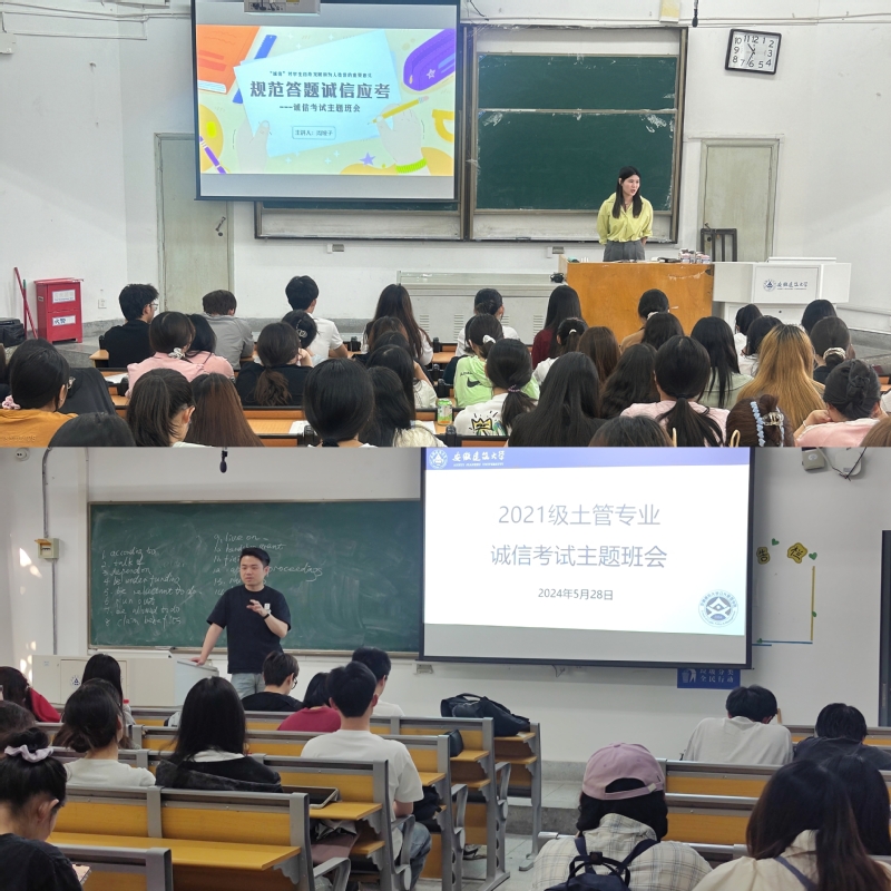 学院结合学风建设、班级建设、党团骨干建设等,面向高年级强化动员和引领,面向低年级强化组织和教育,将“教”与“学”、“真”与“实”紧密结合起来,开展了一系列形式多样的诚信教育活动。“安建大公小管”微信公众号发布“诚信应考,做文明答卷人”主题推文;全体学生在主题班会上认真阅读并签署诚信考试承诺书,承诺自觉抵制违规行为;学院开展诚信教育宣传条幅签名活动,并组织学生党员举行诚信教育宣讲活动,多方位建设诚信教育。