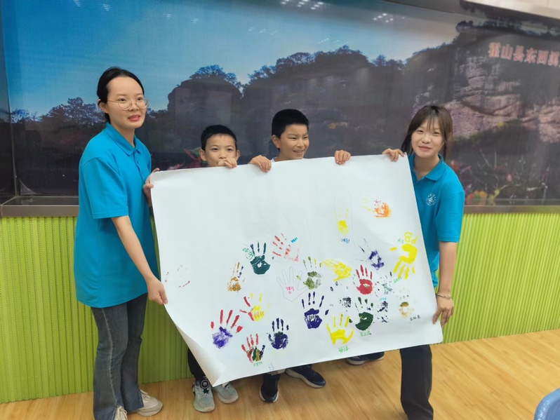 赠人玫瑰,手留余香。小朋友们掌心相连,笑语盈盈,击掌之间,友谊花开。志愿者们以趣味盎然的方式,引导孩子们踏上理解、包容与友爱的旅程。在绘画过程中,那一双双色彩明丽的手掌轮廓印在了洁白的卡纸上,卡纸变得五彩斑斓,创造了美丽,展现了孩子们的蓬勃生机。