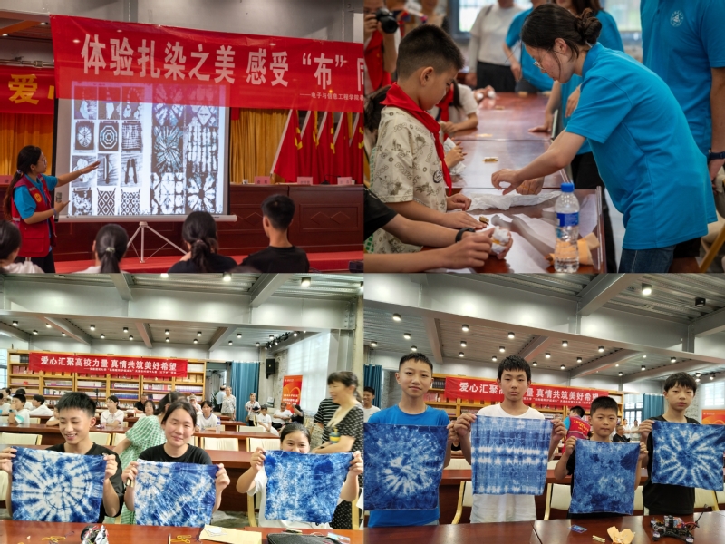 青少年学生是祖国的未来,民族的希望,加强对青少年学生的中华优秀传统文化教育,对于培养中华优秀传统文化的继承者和弘扬者,推动文化传承创新,建设社会主义先进文化具有基础作用。来自电信学院的志愿者们通过“神奇的扎染”体验课和科普知识宣讲为留守儿童们带来了一场传统文化与科技创新的知识碰撞。