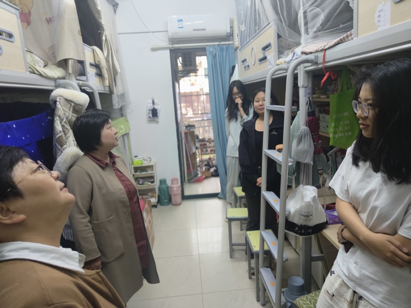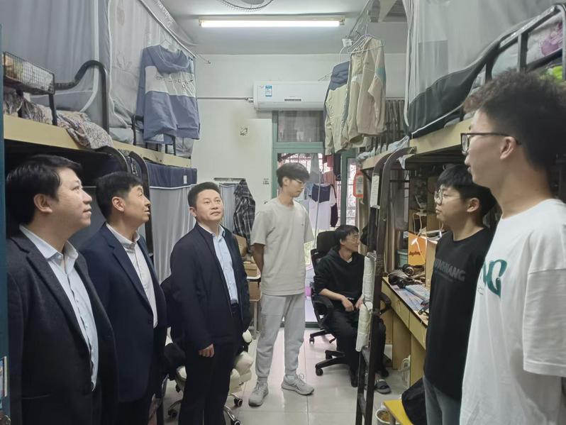 李早一行实地走访了徽韵楼艺术学院7507教室,亲切询问了同学们的课程进度,了解指导教师每周指导学生的次数。深入8号楼、11号楼12号楼学生宿舍,仔细考察了洗衣房、淋浴间,仔细询问学生宿舍生活情况、作息规律以及课外活动的情况,并嘱咐同学们注意用电安全,不使用违规电器,及时排查安全隐患。