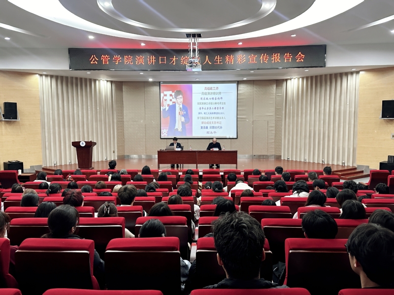 本网讯 为帮助同学们掌握演讲技巧,提升沟通能力,在工作和生活中更加自信地表达自我,3月13日,公管学院在金寨路校区图书馆二楼报告厅举办以“演讲口才绽放人生精彩”为主题的宣传报告会,报告会由行业演讲专家颜永平老师主讲,学院院长黄佳豪主持,辅导员代表及200余名同学聆听此次报告会。