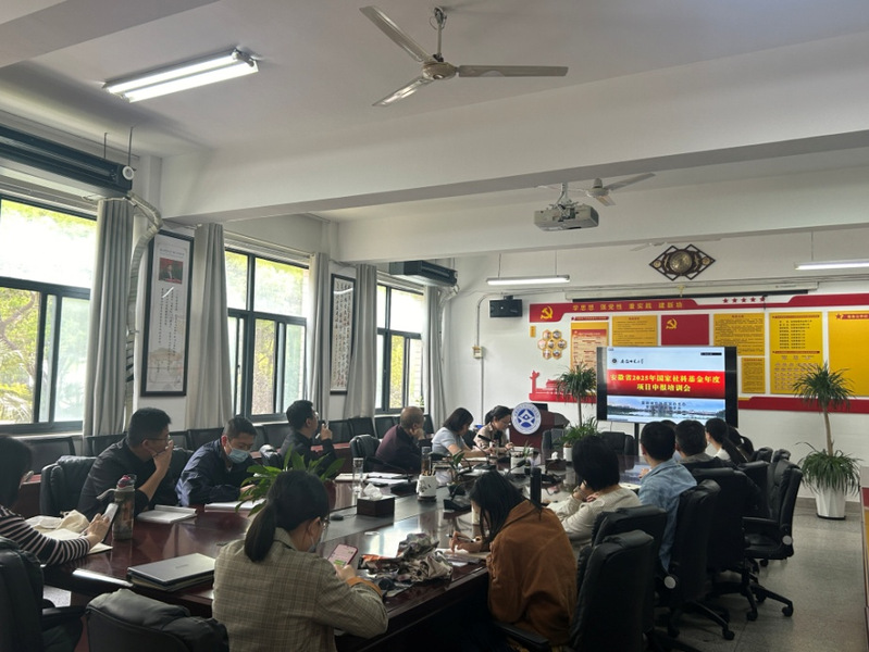 本网讯 4月16日下午,公共管理学院在建树楼F209会议室集中观看了“安徽省2025年国家社科基金年度项目申报培训会”,安徽师范大学徐彬教授、戴中朝教授进行线上指导,申报国家社会科学基金和教育部基金的老师参会。