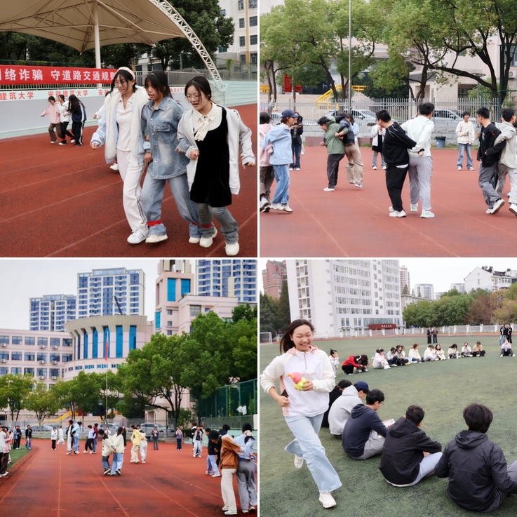 活动以趣味游戏为载体,在破冰游戏——“螃蟹赛跑”环节中,新生两两一组,模仿螃蟹半蹲横行,有的小组因节奏不一险些摔倒,但在彼此搀扶下又迅速调整状态;有的配合默契稳步领先,场外加油声此起彼伏,协作意识在趣味比拼中悄然萌芽;“丢手绢”游戏环节,新生围圈而坐,伴随童谣展开追逐,追上则由丢手绢者表演才艺,未追上则开启新一轮角逐,满含童年回忆的游戏让大家快速熟络,展现出青春活力与自信,将活动氛围推向高潮;压轴环节“绑腿赛跑”则更加考验团队协作,3人一组绑腿共赴50米终点,各小组有的用口号统一节奏,有的则坚持以稳制胜。赛中即便步伐错乱、有人摔倒,也无人退缩,大家互相鼓劲、迅速重整,每一组冲线都引发现场欢呼。