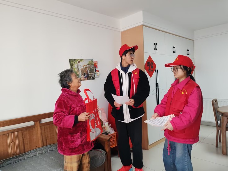 接着,在消防员与网格员的带领下,学生志愿者分组开展入户消防安全志愿活动。针对行动不便、记忆力较弱的独居老人,志愿者特意放慢语速,用生活化的语言详细讲解报警流程、火灾逃生技巧等关键内容,协助老人逐一排查家中用电用火隐患,并张贴“安心提示贴”直观呈现消防注意事项,切实将安全保障落到实处。