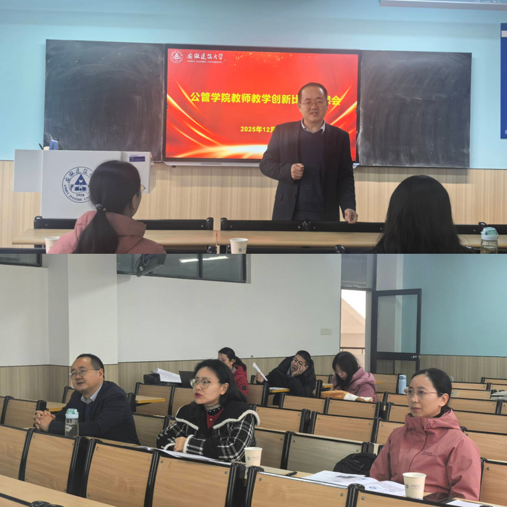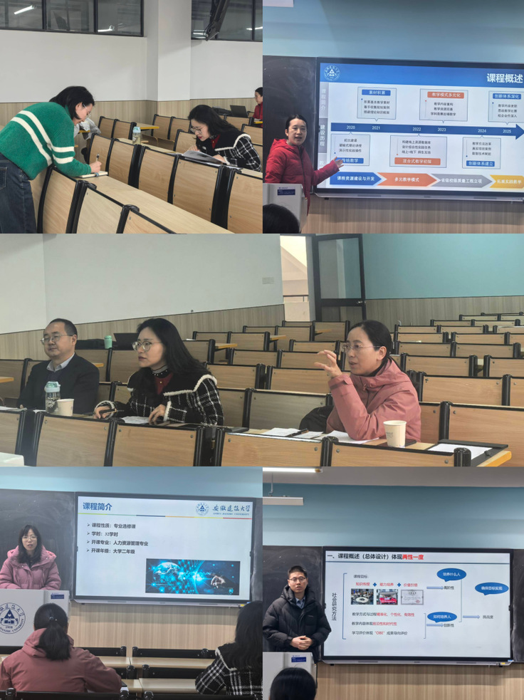 本网讯 为深化教育教学改革,夯实教师教学核心能力,助力优质课程打磨,承接此前学院教学创新比赛成果,12月31日上午,公管学院在金寨路校区智慧教室F512如期开展学校教学创新比赛赛前磨课活动。本次活动特别全国高校教师教学创新大赛二等奖获得者张媛、胡安琪等两位老师担任点评嘉宾,即将代表公管学院参加比赛的王鹏、郑敏、赵斌斌、朱永甜、张童及其他相关老师全程参与,副院长连瑞瑞主持活动。