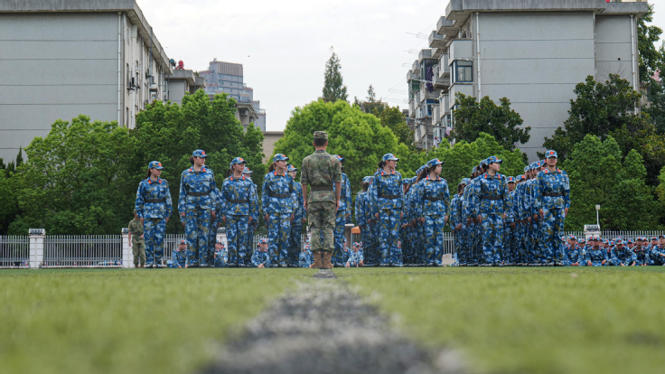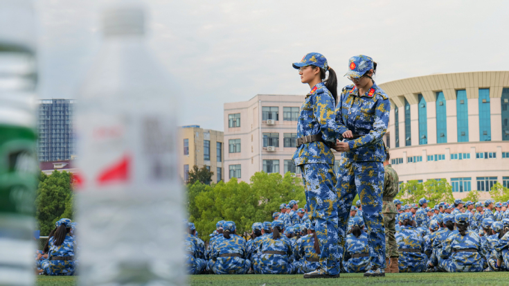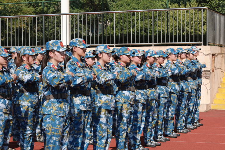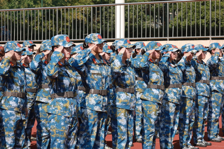 清晨的军姿开启了第一天的军训时光,仲秋的骄阳不输夏日,绿茵场上热情不减。清澈而坚定的蓝绿色在操场上列着整齐的队伍,稍息、立正、齐步走,一令一动尽显青年人的朝气蓬勃、意气风发。声声口号展现着青春的力量,簌簌汗水折射出努力的光芒。“文明其精神,野蛮其体魄。”军训的实际训练有利于培养同学们坚韧不拔的意志品质,在增强体质的同时,促进优良精神品格的形成与发展。希望同学们能将军训中学习到的军人作风贯穿进学习生活中,不断磨练自己、提升自己,创造出独属于自己的青春光彩。