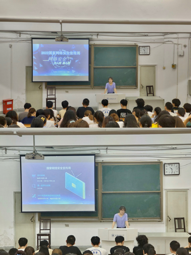 此次主题教育以国家网络安全工作取得的重大成就为切入点,组织同学们学习国家网络安全周的相关知识以及《国家网络安全法》等法律法规,并通过案例分析,列举了常见的网络违法违纪行为,帮助学生提高法制意识,筑牢底线思维。最后,从学生遭遇电信网络诈骗的典型事例入手,围绕常见电信诈骗风险,讲解了如何防范和识别两卡犯罪、网络刷单、购物诈骗等诈骗行为,总结了电信网络诈骗行为的主要特征。