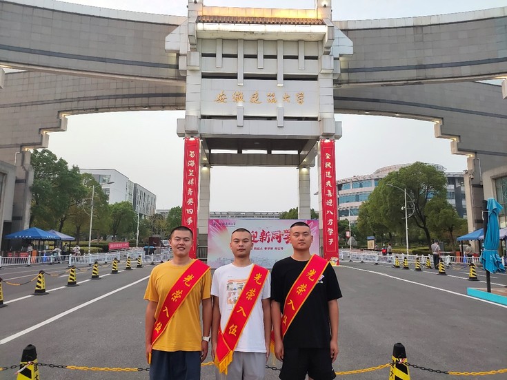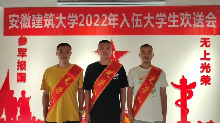 本网讯 金秋九月,安徽建筑大学19名学子从学校光荣应征入伍,其中5名学生来自经济与管理学院,更难能可贵的是,有3名同学来自同一专业、同一寝室,他们分别是2018级工程管理专业的高叶、刘洋、戴腊虎。