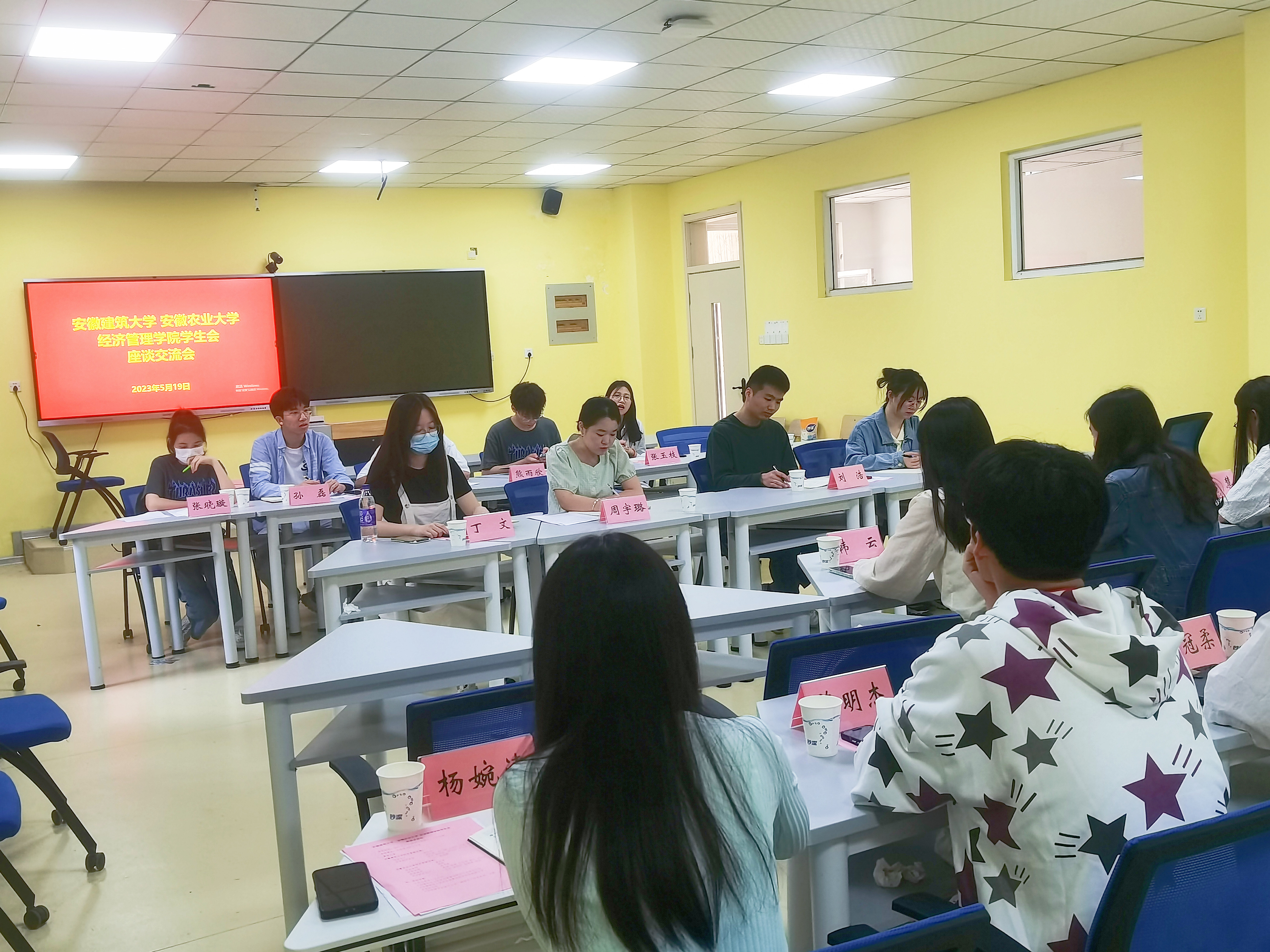 座谈会议伊始,两院学生会出席成员进行了自我介绍。安徽农业大学经济管理学院团委学生干部介绍了在共青团改革、特色品牌、社会实践、新媒体运营等团学工作方面的特色和成果。随后,与会双方从实际问题出发,围绕学生会组织架构和服务管理、活动策划宣传执行、社团管理、“第二课堂”制度、新媒体平台运营管理等方面开展交流探讨。