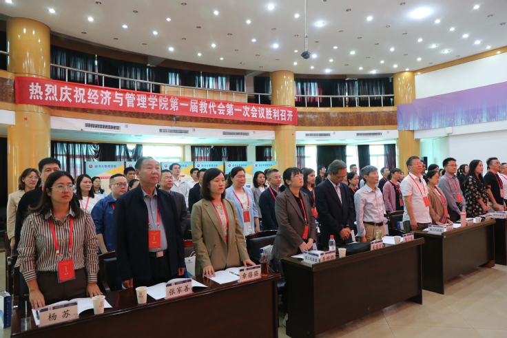 本网讯 为充分发挥全体教职工在学院民主管理、民主监督和民主决策中的作用,积极完善二级学院教职工代表大会制度,进一步调动教职工建功新时代的积极性和创造性,10月18日,经济与管理学院一届一次教职工代表大会在北校区F楼三楼报告厅隆重举行。校党委常委、副校长李早,校工会主席胡雯受邀出席本次会议,50名经管学院一届一次教代会正式代表、16名列席代表及2名校友代表参加大会。
