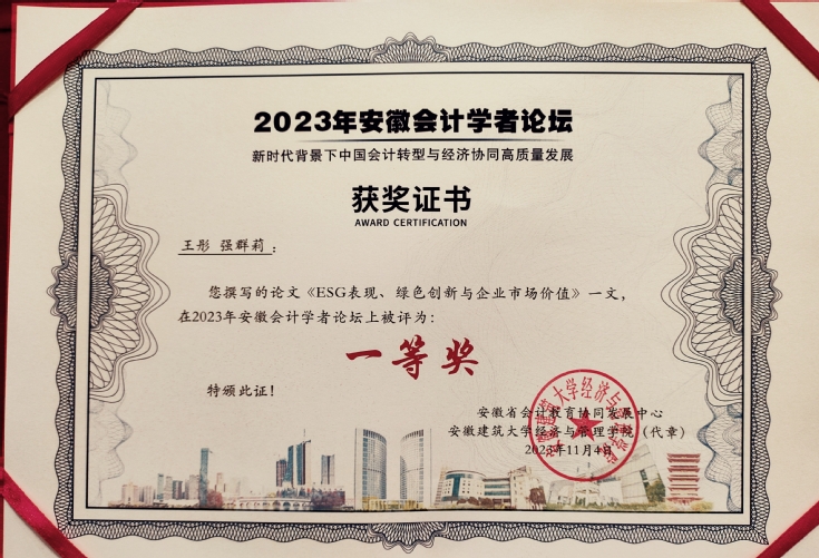 学院会计学科负责人强群莉教授受邀主持下午的分论坛三。学院研究生王彤和朱雁分别荣获年会论文一等奖和三等奖,王彤还在分论坛做成果展示汇报,与来自安徽大学、安徽财经大学等兄弟院校老师和研究生展开深入沟通及交流。