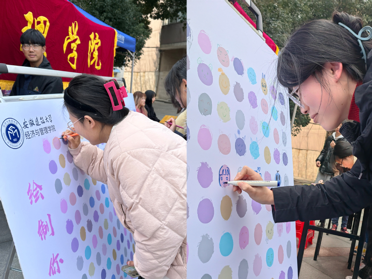 女生们发挥想象力与创造力,在自画墙上绘制出一张张笑脸,描绘出心中最美的愿望。手绘自画像后即可领取一支玫瑰花,领取的不只是鲜花,更是经管学院给予女生的美好祝愿。女生们纷纷手拿鲜花于打卡墙合影留念,留下自己最美好的身影。