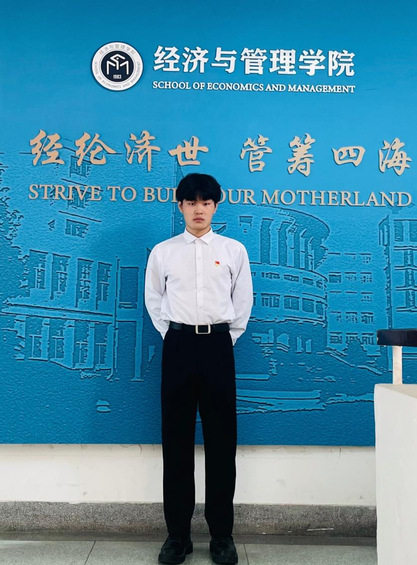 盛姚晨认为心有所信,方能行远。制定目标可以让自己更有动力、更有方向地努力前行。大一开始,他就积极向党组织靠拢、努力提高自己的专业能力。经过三年的奋斗,盛姚晨于2023年成为一名光荣的中共预备党员。他两年的学分绩点和综合绩点均位列专业第一,连续获得校一等奖学金,2023年度更是获得国家奖学金,荣获全国大学生商科综合能力大赛二等奖和三等奖、全国大学生商科综合能力大赛三等奖、第十五届“创新创业”全国管理决策模拟大赛三等奖以及若干省级、校级奖项。如今大三的他,新阶段的规划是考研上岸,继续深造。他坚信:只要用心对待,努力去做,坚持到底,一定有所收获,实现自己的梦想。