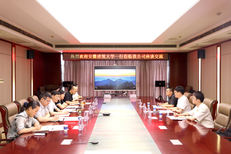 邢志勇详细介绍了公司的发展历程、项目分布、业务板块和未来规划。他表示,集团现有19名安徽建筑大学毕业生在各个岗位担任业务骨干,个个能吃苦、肯奋斗,专业素养高,期待更多优秀的建大学子到企业施展才干。希望通过此次交流,进一步加强双方在人才培训、资源链接、智能建造、支部共建等方面展开全方位全过程的深度合作。