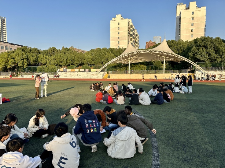 本网讯 为增强团队意识,增进新生间的友谊。11月7日,经管学院组织2024级学生代表于金寨路校区田径场举行素质拓展活动。活动分为团队建立、队徽设计、团建游戏三个环节进行。