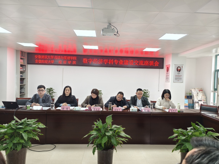 夏光兰首先对彭志胜一行表示欢迎,并简要介绍了经济学院发展历史、学生培养模式、导师设置等情况;彭志胜介绍了建筑大学经济与管理学院的发展历史、专业设置、师资力量、学科建设等情况;章蓓蓓介绍了安徽建筑大学经济与管理学院数字经济学科点建设情况及数字经济专业和人才培养情况;黄敦平和周慧分别围绕经济学院数字经济学科点建设情况以及数字经济本科专业和人才培养情况进行了详细汇报。此外,双方还就党建工作、人才引进、培养方案修订、实验室建设等方面进行了热烈的交流研讨。