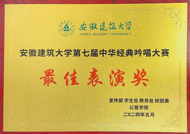 学院深谙中华优秀传统文化对于青年成长的重要性,将其作为思政教育的重要源泉,通过“菁琯”青年宣讲团这一平台,开展了一系列别开生面的主题宣讲、情景剧、吟诵等活动,让古老的文化在现代语境中焕发新生。在2023年安徽建筑大学第六届中华经典吟唱大赛中,宣讲团凭借原创歌舞诵读节目《草木含情风雅随行》荣获校级二等奖和最佳表演奖,以及省级三等奖,展现了传统文化的独特魅力。2024年至2025年,宣讲团又以原创情景剧《秋风秋雨愁煞人》和《清风千年》成功蝉联校级一等奖,不仅展现了传统文化的独特魅力,更在实践中加深了学生对传统文化的理解和认同,实现从“古籍诵读”到“文化转译”的实践升级,为学院思政教育奠定了坚实的文化基础。