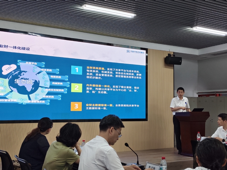 李峰首先对彭志胜一行表示欢迎,并对中铁四局的基本情况以及财务共享管理中心的组织架构、业务流程、信息化建设成果等进行了介绍。此后,数据资产部李兴伟部长详细梳理了该中心的发展历程,并结合企业的真实业务案例,从业务标准化、业财一体化、风险防控体系建设、智能财务研究、管理会计报告和共享中心运营管理等方面详细阐述了该中心的运营模式及特色。