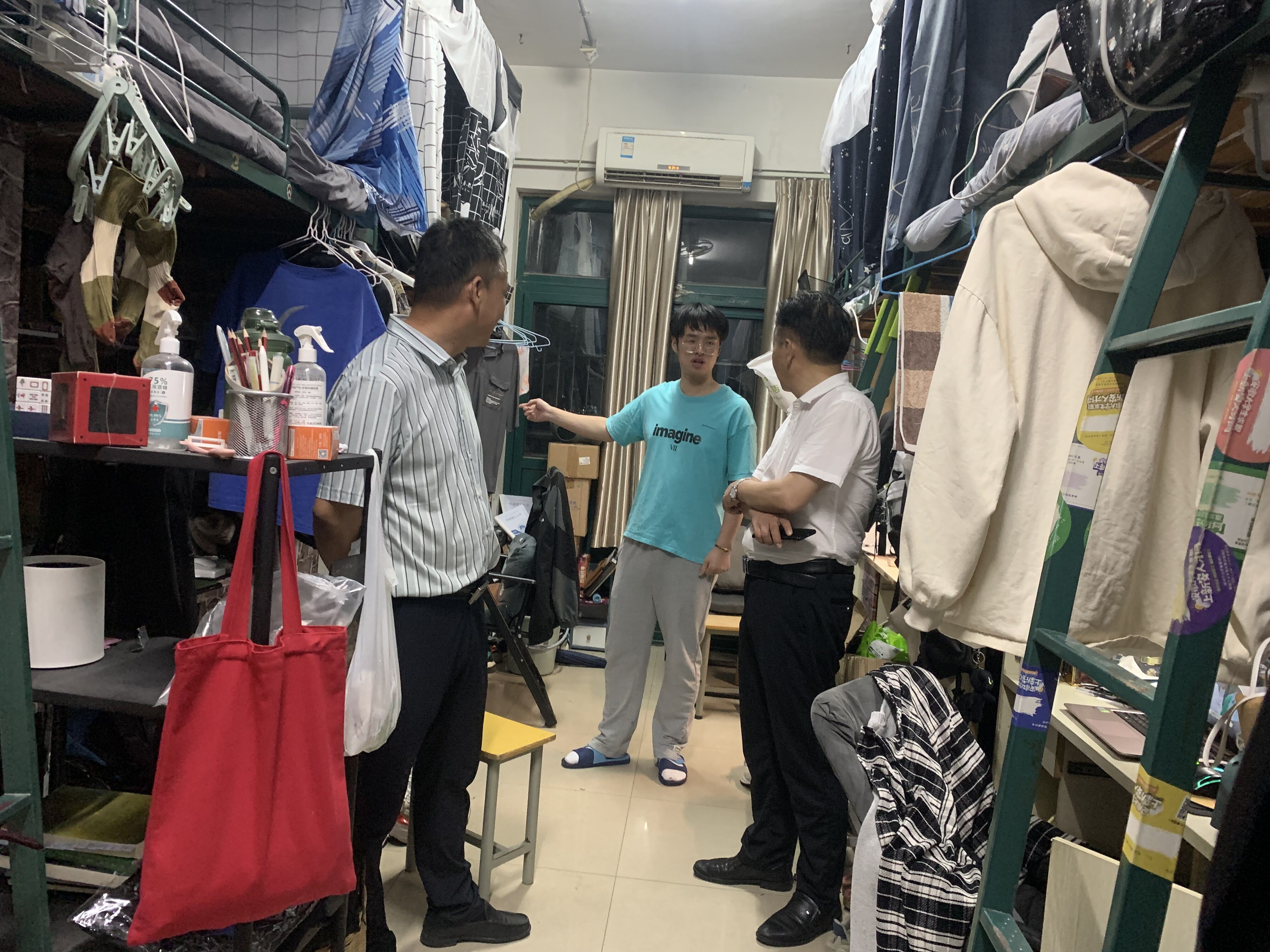 本网讯 为进一步做好毕业生安全教育,密切关注毕业生的思想动态,做到毕业生离校工作平安、稳定、有序。6月17日晚,环能学院党委书记戴前宏、副书记胡志龙与毕业班辅导员深入环能学院学生宿舍看望学生,了解毕业学生学习、就业等状况。