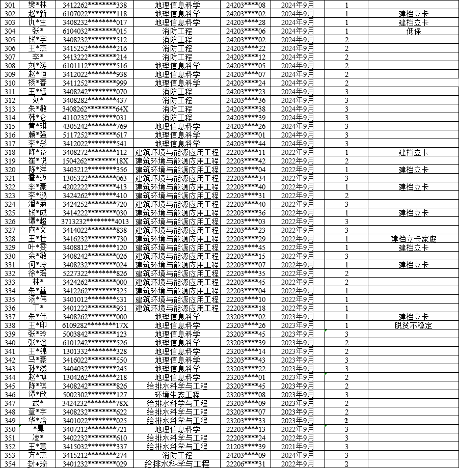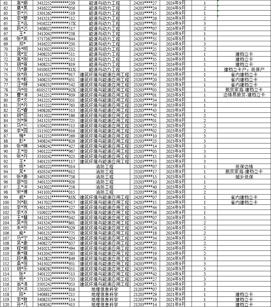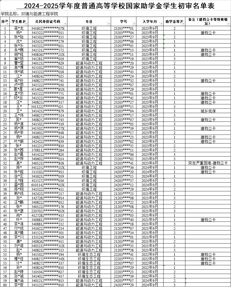 环境与能源工程学院2024年度国家助学金初审名单公示