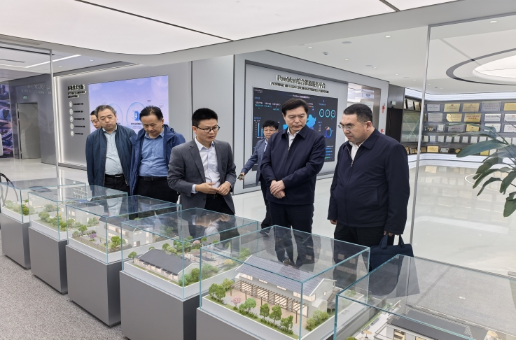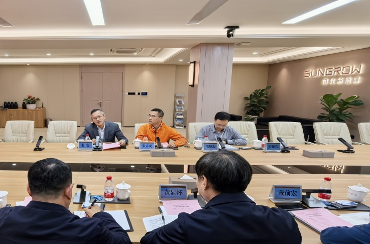 黄显怀一行首先参观了阳光新能源开发股份有限公司的展厅,听取了新能源设备场景应用、典型案例等情况的介绍。