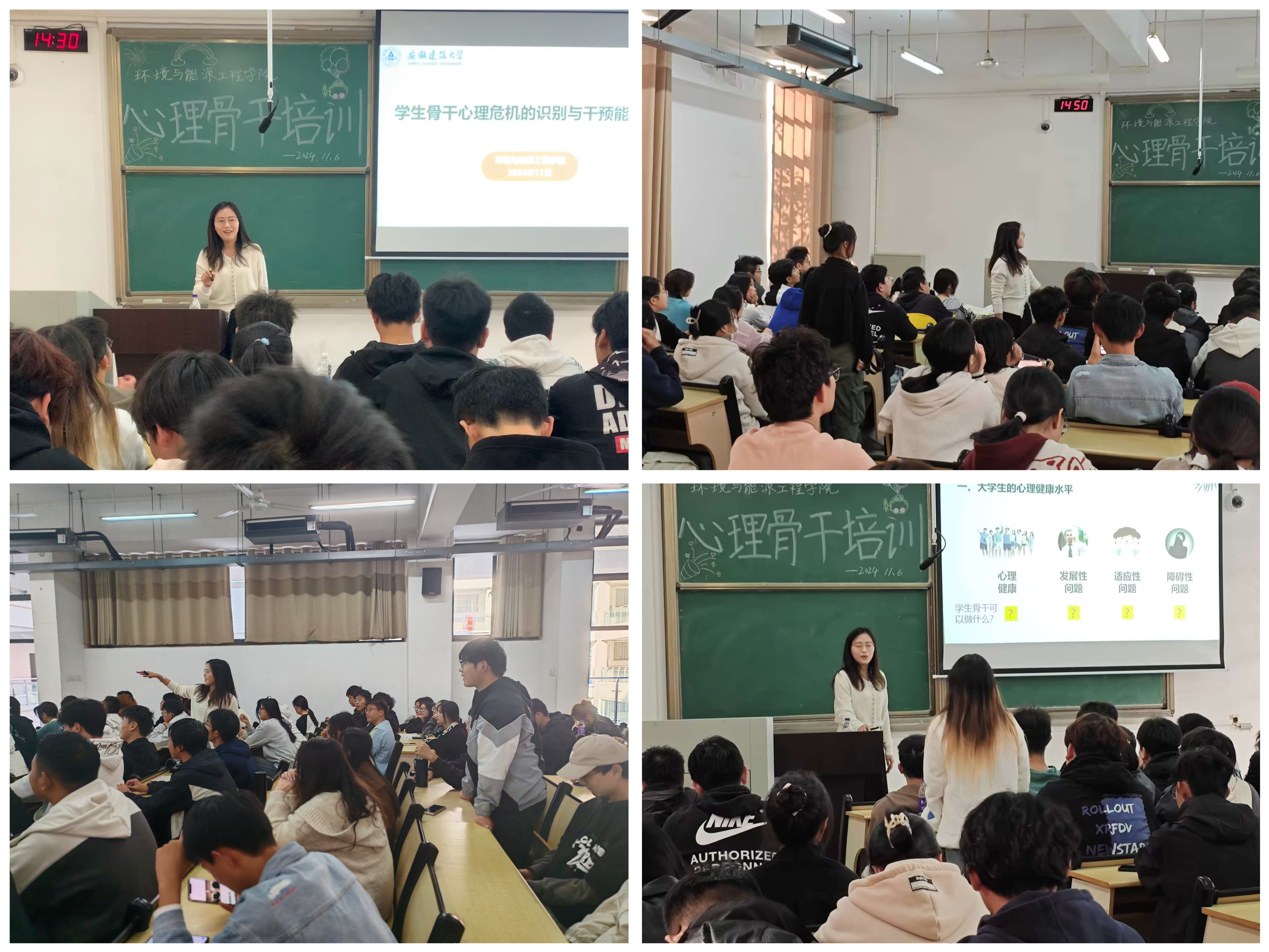 本网讯 为进一步加强心理健康教育学生骨干队伍建设,增强学生心理健康知识和技能储备,充分发挥朋辈心理互助作用和桥梁纽带作用,11月6日下午,环能学院在逸夫楼开展学生心理骨干心理危机的识别与干预能力提升培训,本次培训由学院心理辅导站副站长韩三青主讲,学院2022级、2023级、2024级心理委员和宿舍长参加本次培训。
