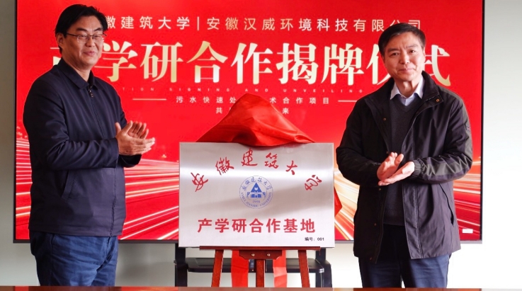 黄显怀与吴强共同为校企产学研合作基地揭牌,雷经发和陈莲萍分别代表校企双方签订校企战略合作协议书,环能学院与汉威环境科技公司签订合作项目研发合同。