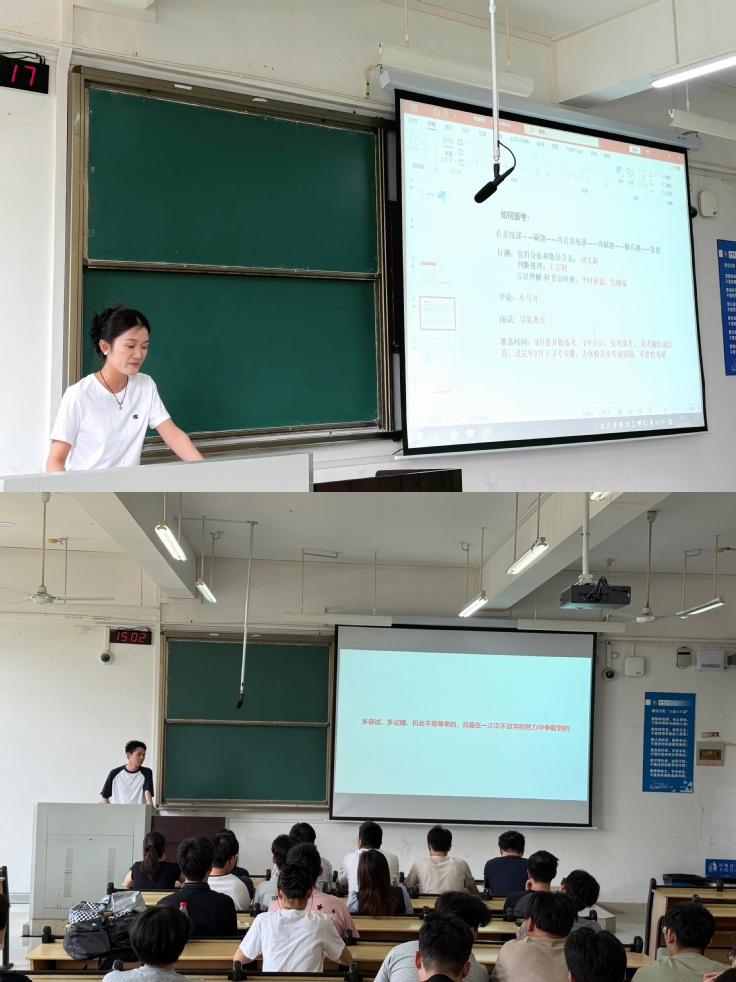 本网讯 526日,环能学院研究生专硕党支部在逸夫楼5201开展了2025年研究生考公经验分享会。本次分享会以“研心不渝,环能筑梦”为主题,特别邀请到2022级土木水利专业研究生陈凡和研究生第一党支部市政工程专业研究生杨丽丽,分享他们在公务员备考过程中的经验所得。