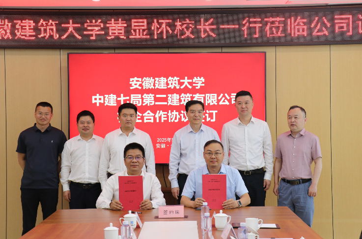 本网讯 为进一步深化校企合作、推动产学研协同创新。5月30日,校党委副书记、校长黄显怀带队赴中建七局第二建筑有限公司开展访企拓岗暨产学研合作交流,中建七局第二建筑有限公司党委书记、董事长尚恺喆热情接待黄显怀一行。中建七局(安徽)建筑有限公司、中建七局第二建筑有限公司基础设施分公司及安徽建筑大学环境与能源工程学院、中国市政工程西南设计研究总院有限公司、安徽给排水设计研究有限公司、合肥市市政设计研究总院有限公司、安徽省城建设计研究总院有限公司、合肥大立环境科技有限公司相关负责人及人员参加本次活动。座谈会由中建七局第二建筑有限公司副总经理万书胜主持。