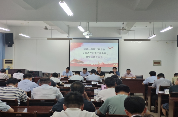 本网讯 6月19日,环境与能源工程学院在徽文楼202会议室召开全面从严治党工作会议暨警示教育大会,学院领导班子成员、全体教职工参加大会,会议由学院党委副书记、纪委书记胡志龙主持。