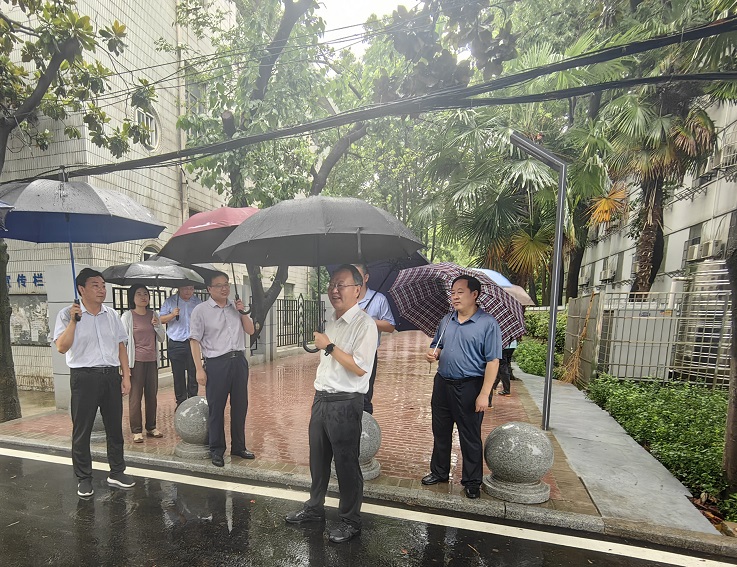 本网讯 6月20日下午,合肥市副市长王连贵,校党委常委、副校长王佐才一行来校现场查看金寨路校区积水治理工程竣工后汛期运营保障情况,合肥市水务局、排水办、水务集团有关单位,学校后勤管理处等部门负责人陪同。