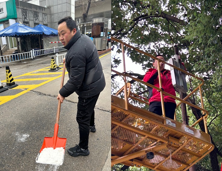 春日里,他带着团队开展“大清扫、大整治”行动,爬梯子清理墙角蛛网,蹲下身擦拭公共设施,让暖阳下的校园焕发新颜;暴雨突至时,他披着雨衣蹚着积水排查下水道,在低洼处放置警示标识,直到确认无一处积水隐患才离开;开学季的校园里,他组织的“爱心车队”穿梭不停,红蓝色马甲的身影帮新生搬运行李,沙哑着嗓子指引报到路线;寒冬来临前,他带着师傅们给水管裹保温棉,在结冰路段铺防滑垫,把“暖冬计划”的每一项措施落到实处。