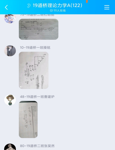 课中在QQ群内发起屏幕分享,采用讲练结合的直播式、互动式教学,反思以往线下教学时学生存在“教师一讲就会,自己做题就不对的”现象的原因,采取讲练结合的互动式教学模式教学。在课中教学时总结性讲解知识结构,课中发布紧扣知识点的课堂练习题并要求学生在QQ群上传成果,教师及时点评并纠正学生存在的问题,学生可及时发现自己的不足以及与他人的差距,尽量保证学生真正掌握当前所学知识点。采取讲练结合的模式让学生在学习过程中在具备扎实的基础前提下,快速地吸纳中难度知识点,而且讲练结合的教学模式增加了课中互动,促进师生之间的交流,师生之间即使相隔千里也有近在咫尺的感觉。