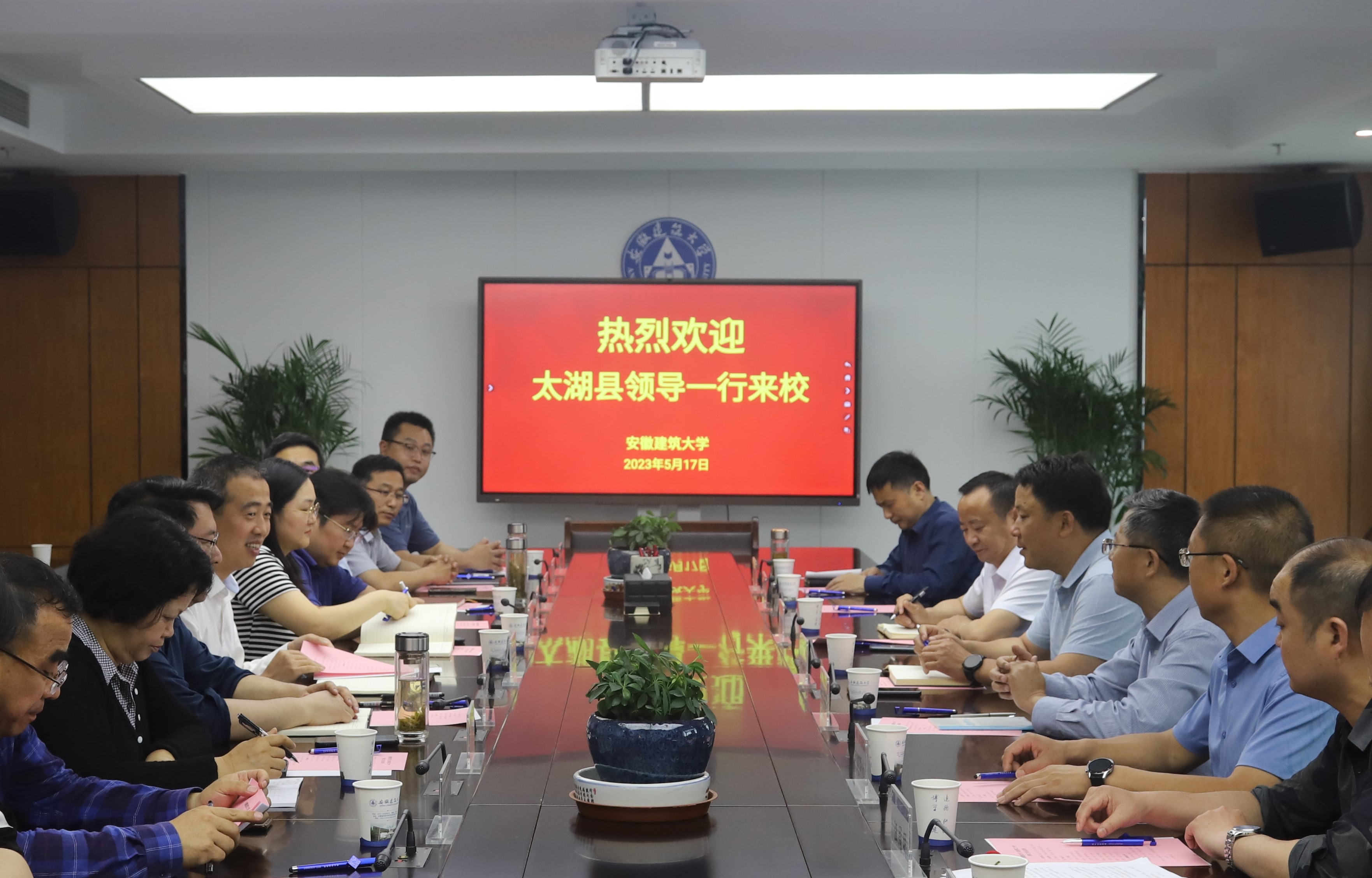 闵杰对李盛华一行来访表示热烈欢迎,介绍了学校发展历程、学科现状和办学成果,对太湖县本科生源质量给予高度评价。李盛华介绍了太湖县近年建设发展情况,对学校对太湖县教育、城乡建设规划、干部队伍建设等工作的帮助表示衷心感谢。学校帮扶单位太湖二中校长赵深远通报了该校校情,就校园规划、实验室和智慧校园建设、师资队伍培训、高考综合改革辅导、学生心理辅导和生涯规划等方面工作提出帮扶期望。太湖县委组织部常务副部长潘茂仁、县教育局局长王振奋就人才帮助支持、开展教育培训、设立实习基地等工作进行了研讨交流。