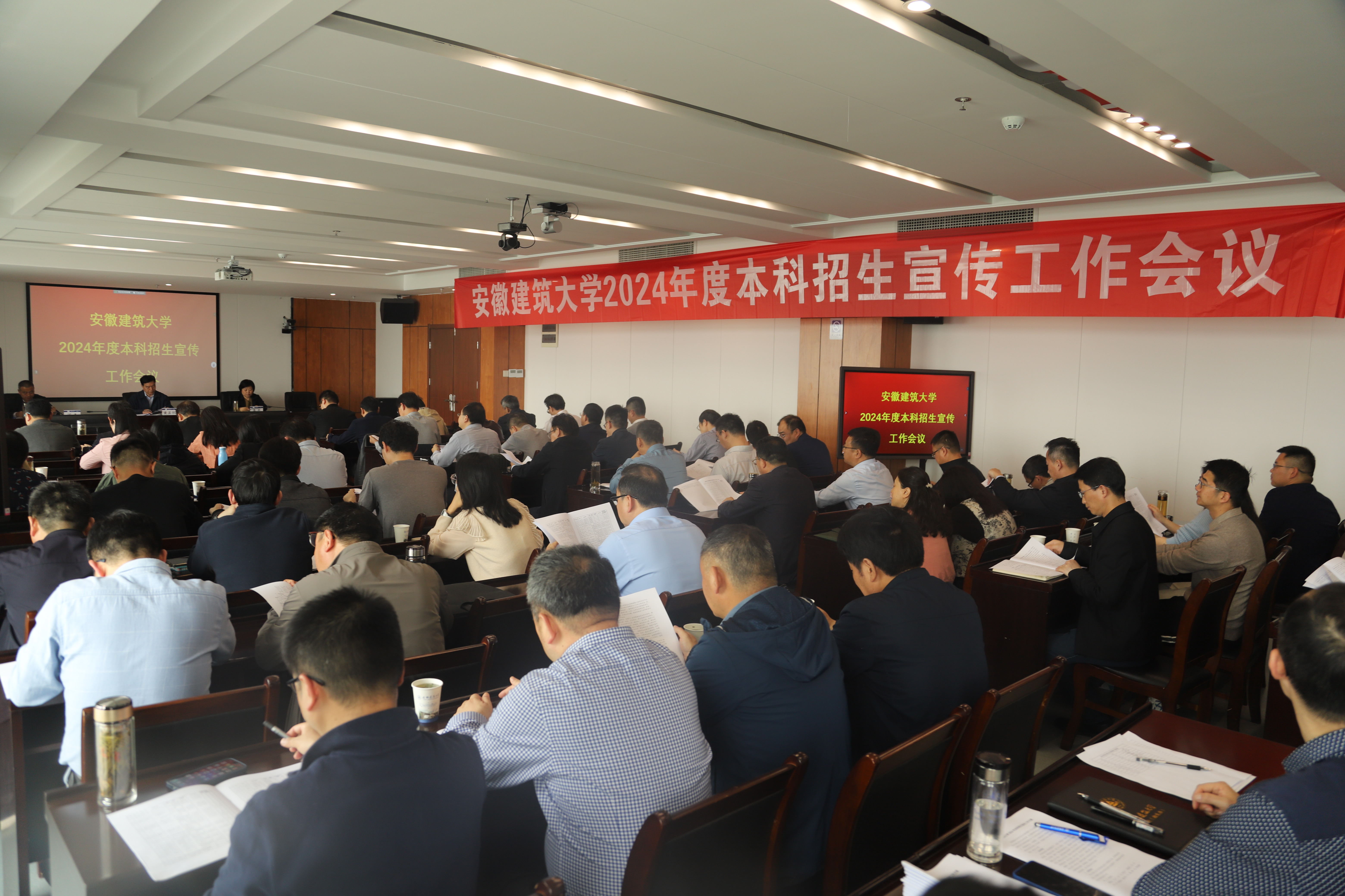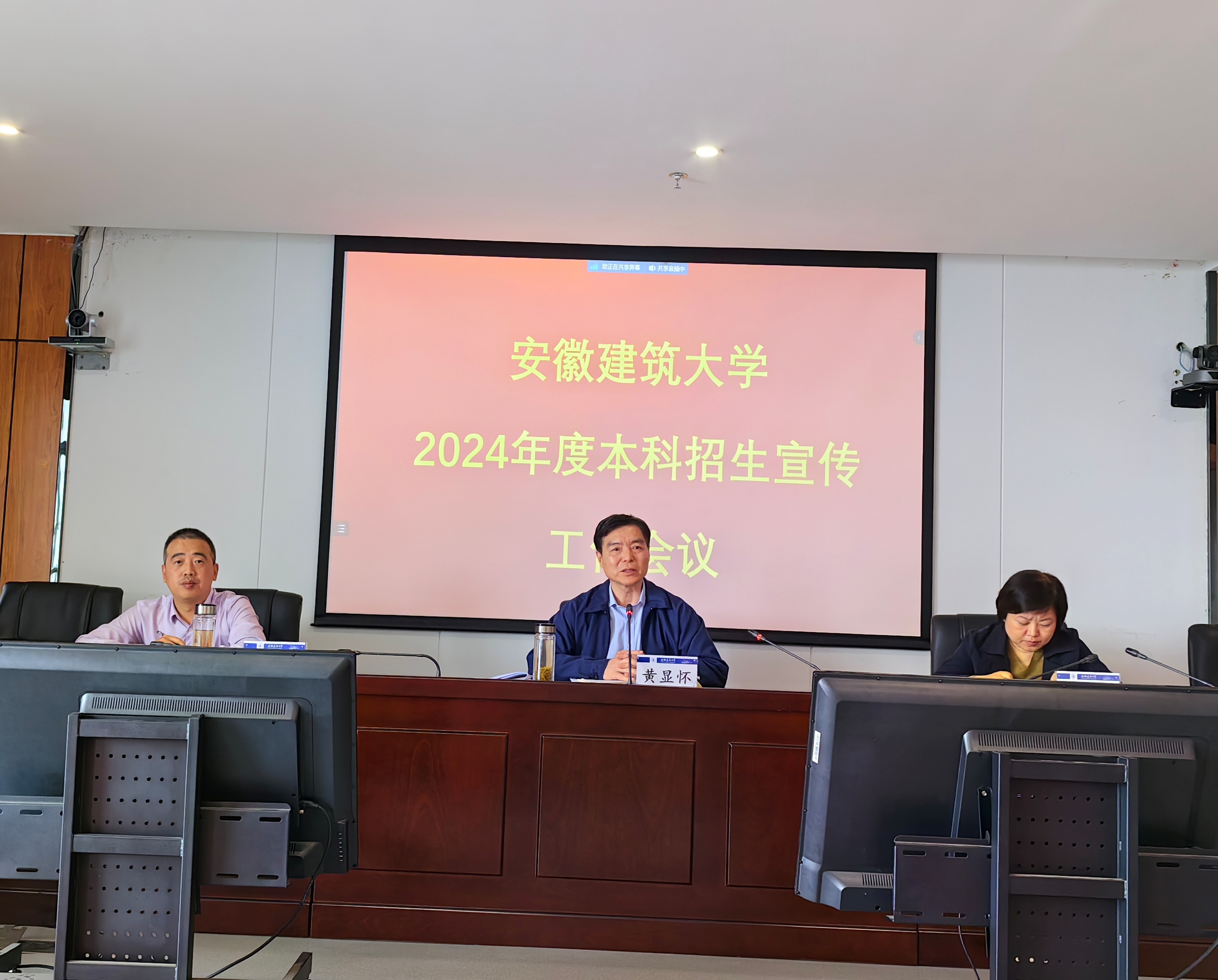 本网讯 4月1日,学校在南校区徽风楼21楼第一会议室召开2024年度本科招生宣传工作会议,校党委副书记、校长黄显怀,校党委常委、副校长闵杰,校党委常委、副校长李早出席会议,学校各教学单位党政主要负责人、分管教学负责人、对接高中干部教师代表参会,会议由李早主持。