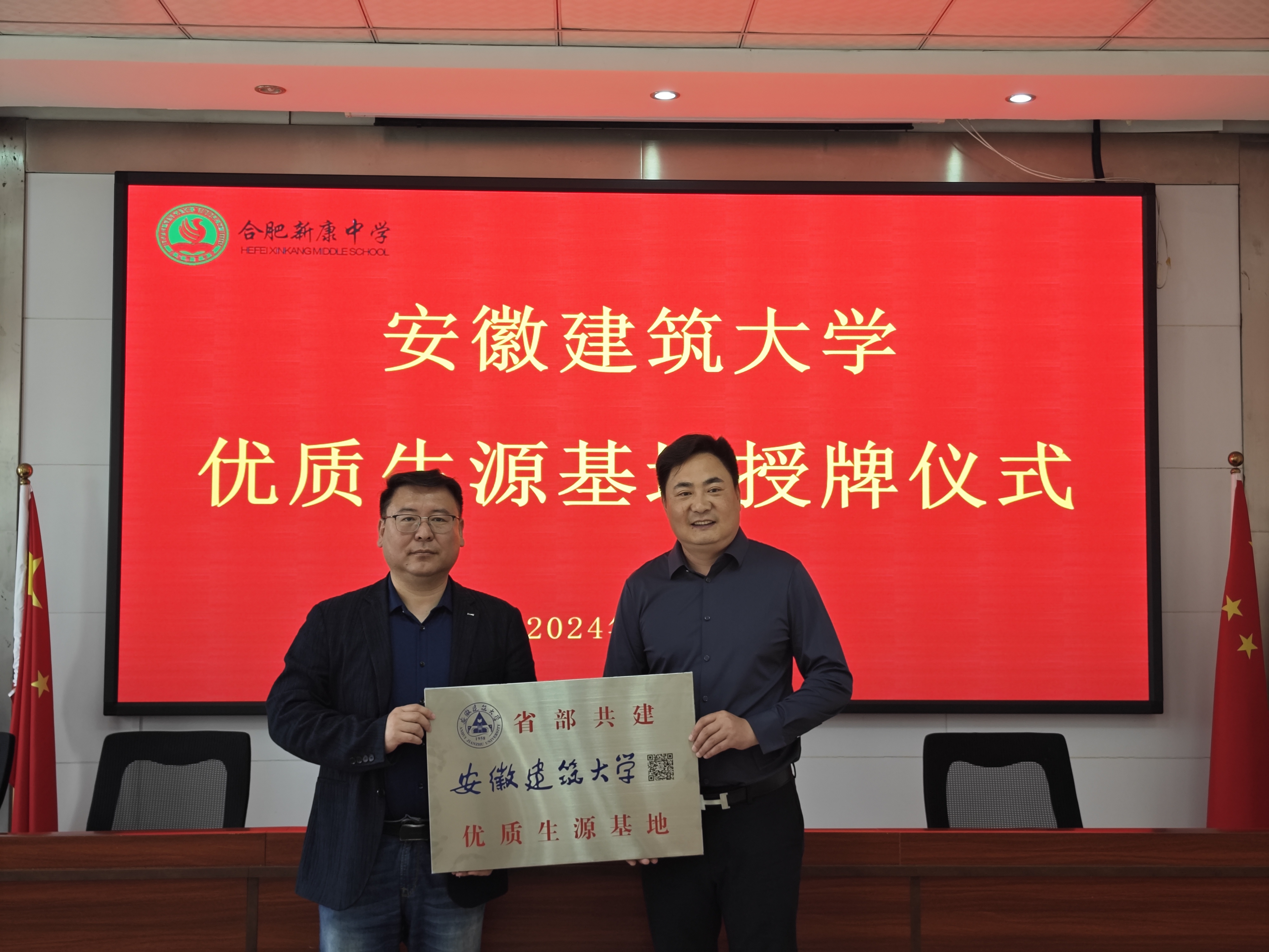 新康中学党支部书记、校长、董事长王俊,高中部校长段方等领导热烈欢迎马巍一行来访,陪同参观了学校教学、生活、学生管理服务设施和特色劳育活动基地。随后,双方举行座谈。马巍介绍了安徽建筑大学办学成果、学科特色、人才培养现状和生源建设情况,徐庆和通报了学校学生管理服务工作总体情况和特色举措,王俊介绍了新康中学发展历史、育人成就和近年高考录取情况。两校就深化校际合作、开展育人共建、进行常态化交流等达成一系列共识。最后,双方共同举行优质生源基地签约授牌仪式,新康中学成为安徽建筑大学在安徽省内第129所优质生源基地中学。(文/图:陈晋;审核:马巍)