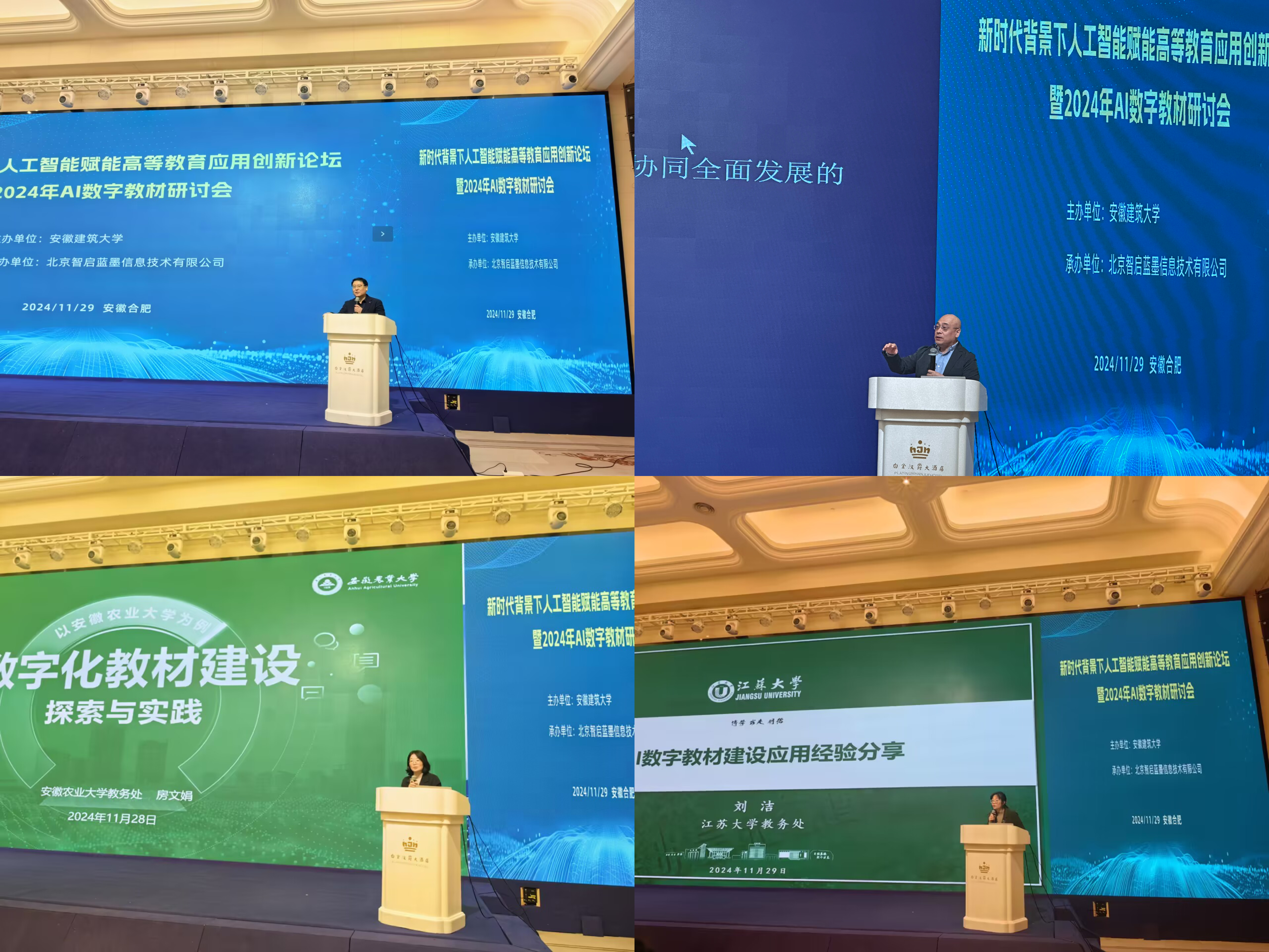 论坛中,来自江苏大学、安徽农业大学、安徽建筑大学等校教学管理一线专家及国内人工智能技术企业负责人举行多场讲座。主讲专家阐述了教育部关于人工智能引领高等教育数字化创新发展、启动人工智能大模型应用示范行动(LEAD行动)等最新政策精神,结合本单位数字教材建设、规划立项、制度建设探索实践,分享了教育数字化转型、人工智能赋能教育教学模式升级改造、AI数字教材研发等成果案例和研究心得,介绍了社交化学习与大数据跟踪提升育人成效、人工智能大模型赋能智慧教材与未来学习中心建设等新领域研究动态。与会专家勉励各高校积极抢占先机,投身技术革命,促进智能技术与教育教学的深度融合,以“智能+”新范式牵引高校教育教学的深层次变革,推动高等教育迈向数字化、智能化的崭新未来。