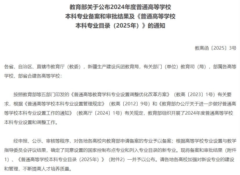 本网讯 为深入贯彻落实党的二十大和二十届二中、三中全会精神,服务国家重大战略和区域经济社会发展需求,学校持续优化学科专业布局。近日,教育部公布了2024年度普通高等学校本科专业备案和审批结果,我校获批新能源科学与工程、人工智能、光电信息材料与器件、数字媒体艺术、数字经济、遥感科学与技术等6个本科专业。