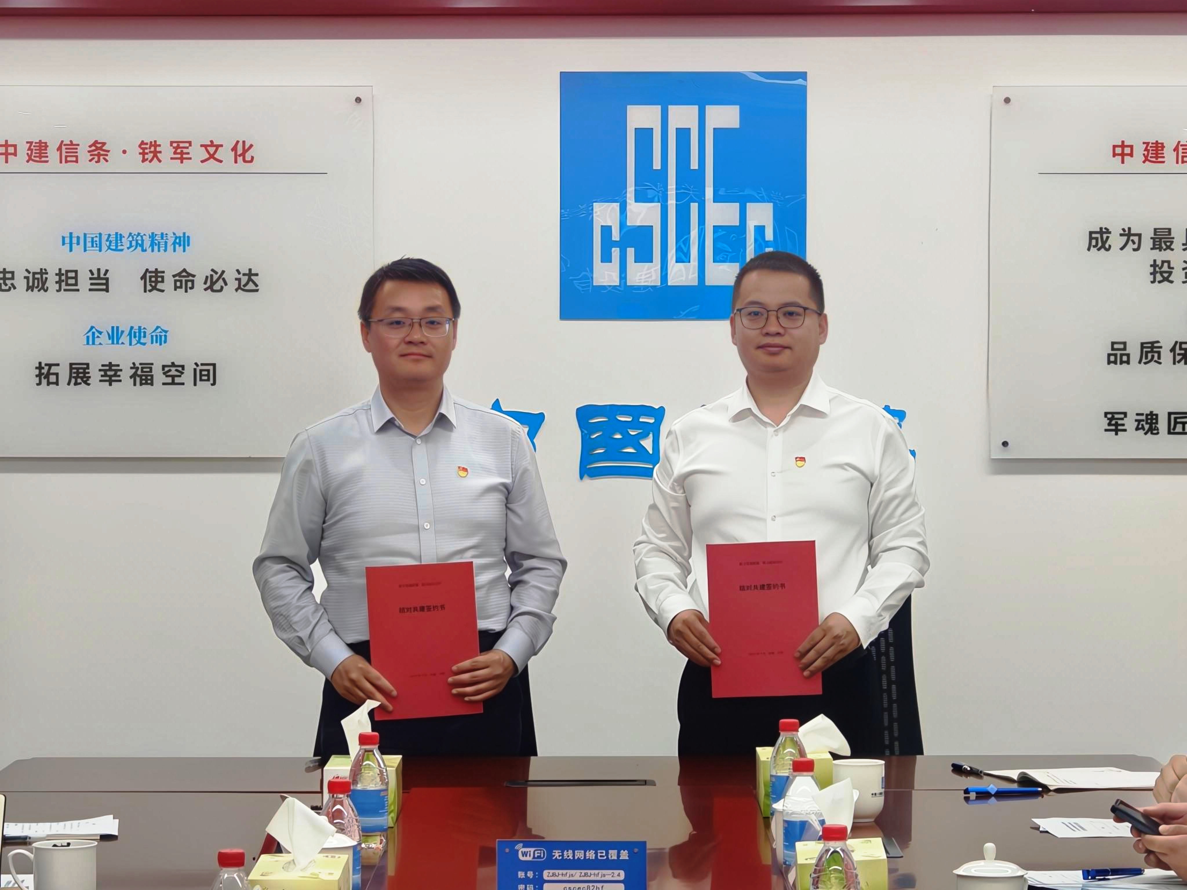 中建八局合肥建设有限公司党委书记、董事长丁晓冬代表企业热烈欢迎安徽建筑大学一行来访,介绍了公司发展历程、红色历史和近年来党建、发展各项建设成果。教务处党支部书记、处长马巍通报了学校共建各支部情况、党建工作现状和近年来校企合作发展举措,重点介绍了2025年首次达成的“校企合作班”“茅以升班”等校企、校地协同育人最新成果。活动期间,公司党委副书记、总经理高善友、教务处副处长王涛代表共建双方签署了“红色联盟”暨校企协同育人协议书,并共同为联盟揭牌。双方举行互赠红色书籍活动,教务处副处长丁超代表学校共建各支部向中建八局赠送了我校主编的《红色江淮 光辉记忆——安徽红色建筑印记》一书。