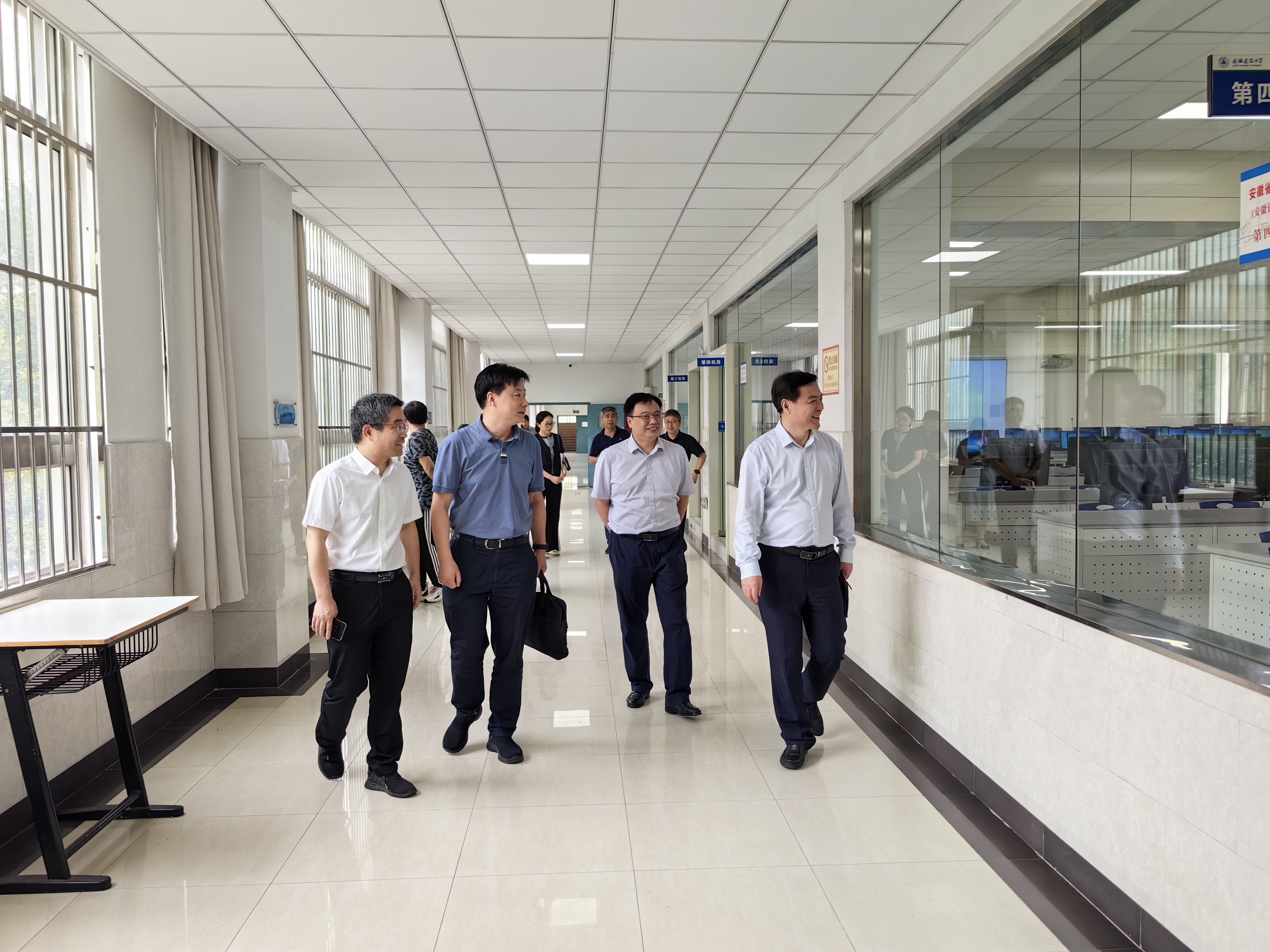 本网讯 5月28日,安徽省教育招生考试院院长沈滔、副院长阮怀忠一行来校检查调研2025年安徽省普通高考数学科目网上评卷准备工作和评卷基地建设情况。校党委副书记、校长黄显怀出席调研会,校党委常委、副校长王佐才主持会议,学校网评办、各工作组负责人参会,调研会在紫云路校区徽习楼103指挥大厅举行。