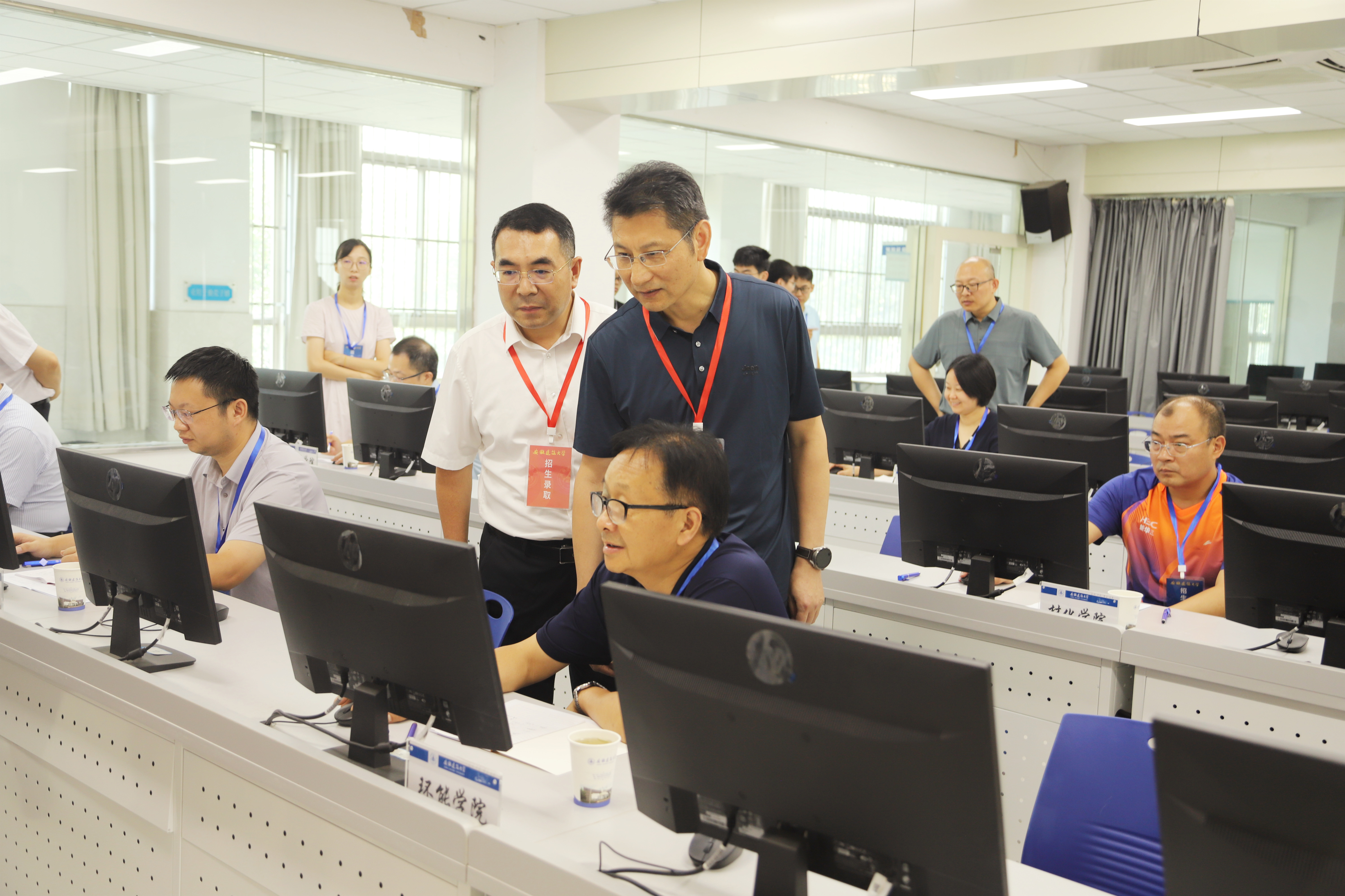 本网讯 7月25日,安徽建筑大学2025年普通高考招生录取阅档会在紫云路校区徽习楼第四机房举行。校教务处、宣传部、保卫处、信网中心和各招生学院负责人参加阅档,校纪委办全程监督。教务处传达了教育部、安徽省关于2025年度普通高校招生录取工作系列文件精神,讲解了本年度阅档流程,纪委办进行了纪律和保密工作培训,各招生学院负责人对安徽省教育招生考试院投档到我校60个招生专业的普通本科批考生报名登记表、成绩与志愿表、体检表等开展逐一审核。
