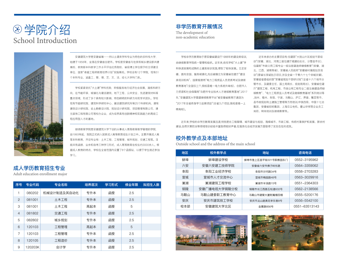 2020年安徽建筑大学继续教育学院招生简章
