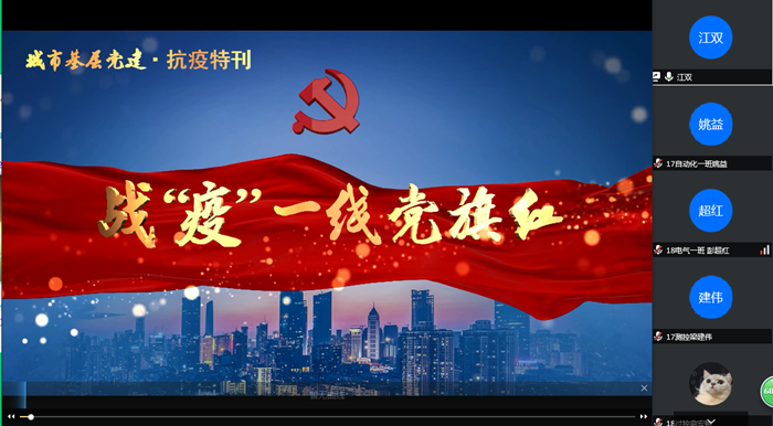 本网讯 为落实学校关于常态化疫情防控“四个一”行动要求,充分发挥师生党员先锋模范作用,7月13日,机电学院组织全体党员线上观看公益专题片《战“疫”一线党旗红》。